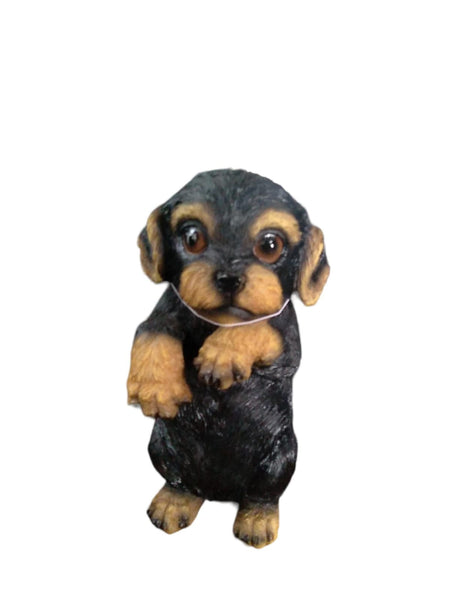 A unique garden décor item of a dog with life-like features. This resin animal is a must-have in any garden.