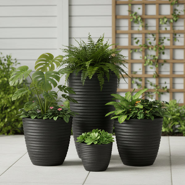 The RingTone fibre pots are defined by their layered ring design, offering a unique texture that enhances contemporary plant styling. This series blends modern design with functional strength, making it suitable for both residential and commercial spaces. Crafted from high-quality fibre, RingTone fibre pots are lightweight, weather-resistant, and built for long-lasting use. Their structured form works well with a wide range of plants, from compact greens to taller foliage. The design adds subtle depth without overpowering the plant, making it easy to integrate into various décor themes. These pots are ideal for indoor areas, balconies, terraces, and office spaces where clean aesthetics are essential. Easy to maintain and durable, RingTone fibre pots bring a refined visual element to everyday planting solutions.